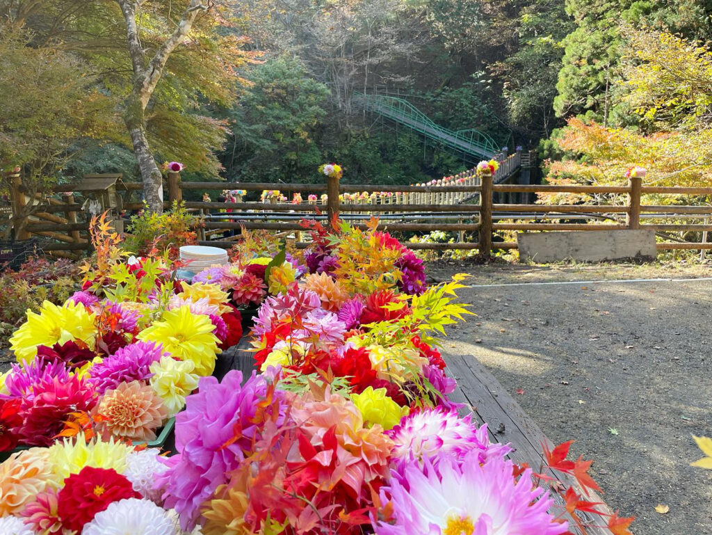 「この周辺は夏でも涼しく、過ごしやすい地域なんですよ。夏場にはウォーキングや渓流釣り(※1)を楽しめますし、ダリアが咲く時期には渓谷広場を彩る飾り付けを行うなど、1年を通して楽しめるように、みんなで試行錯誤しています。」